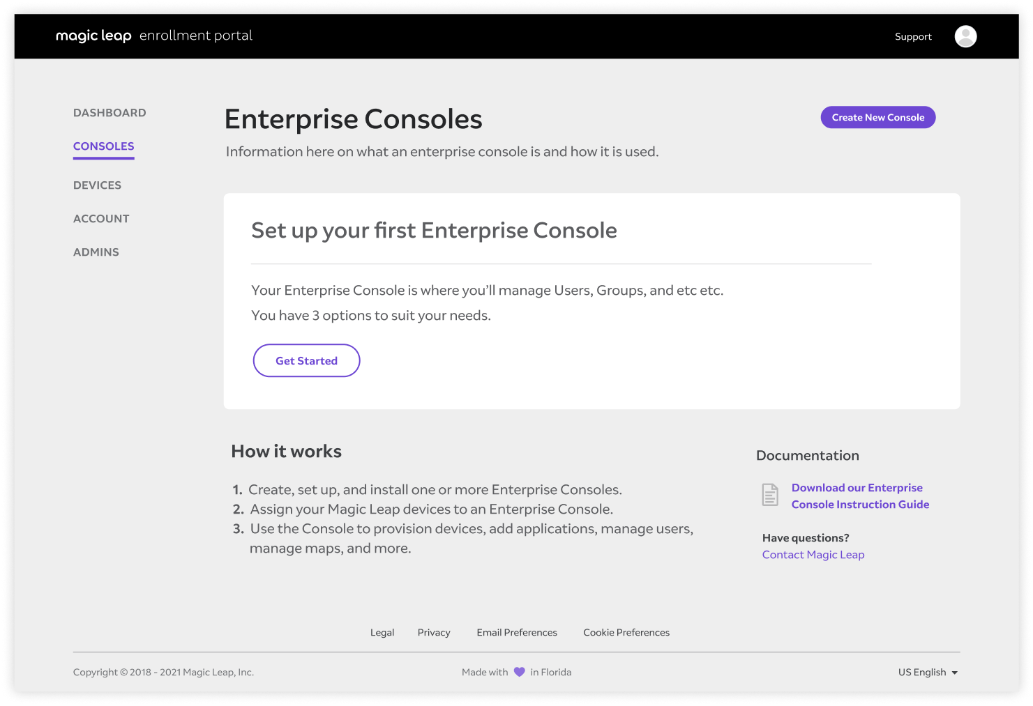 I was also able to work on multiple developer and administrator experiences; a website that developers use to create apps in tandem with Unity and Unreal, as well as an interface for administrators managing multiple devices.